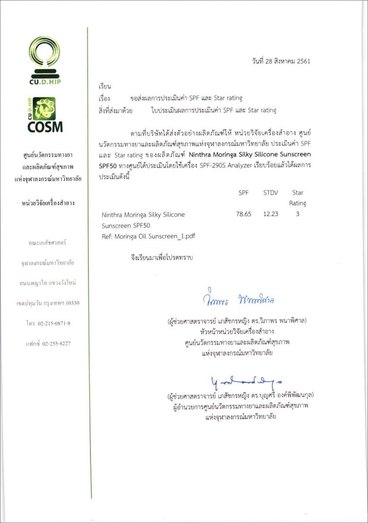 ครีมกันแดดน้ำมันมะรุมใยไหม (NINTHRA Brand)