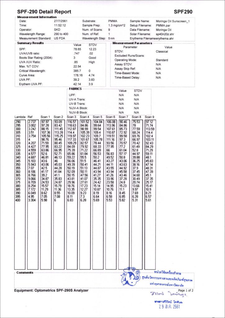 ครีมกันแดดน้ำมันมะรุม เนื้อบางเบาดุดใยไหม กันน้ำ กันเหงื่อ ปราศจากความมัน สวยได้ตลอดทั้งวัน